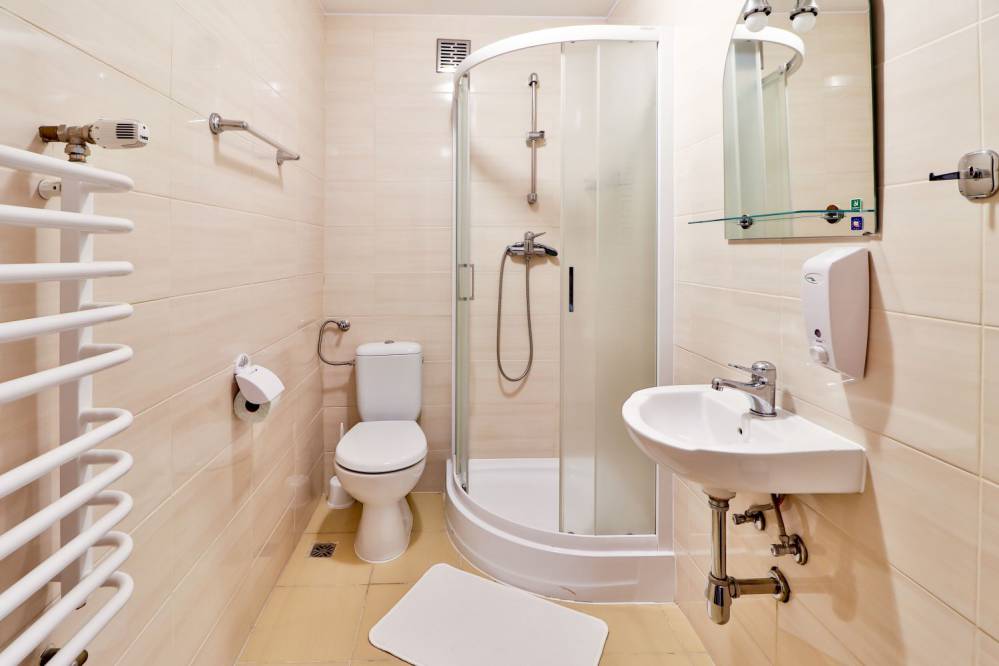 pobyt w pokojach 2, 3, 4 osobowych lub typu studio, wyposażonych w pełny węzeł sanitarny oraz sprzęt multimedialny, TV LED, czajnik elektryczny, ręczniki kąpielowe,
