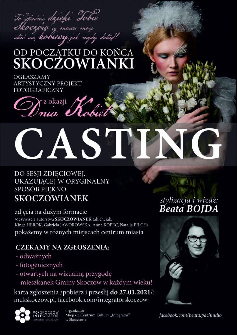 a wraz z nim CASTING do sesji zdjęciowej, ukazującej w oryginalny sposób piękno skoczowianek. Czekamy na zgłoszenia: odważnych, fotogenicznych, otwartych na wizualną przygodę mieszkanek Gminy Skoczów w każdym wieku!