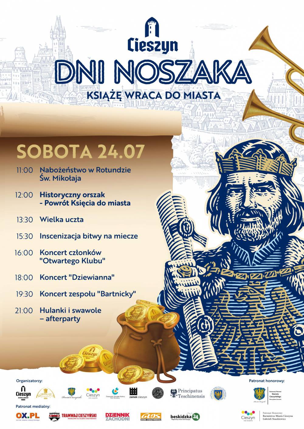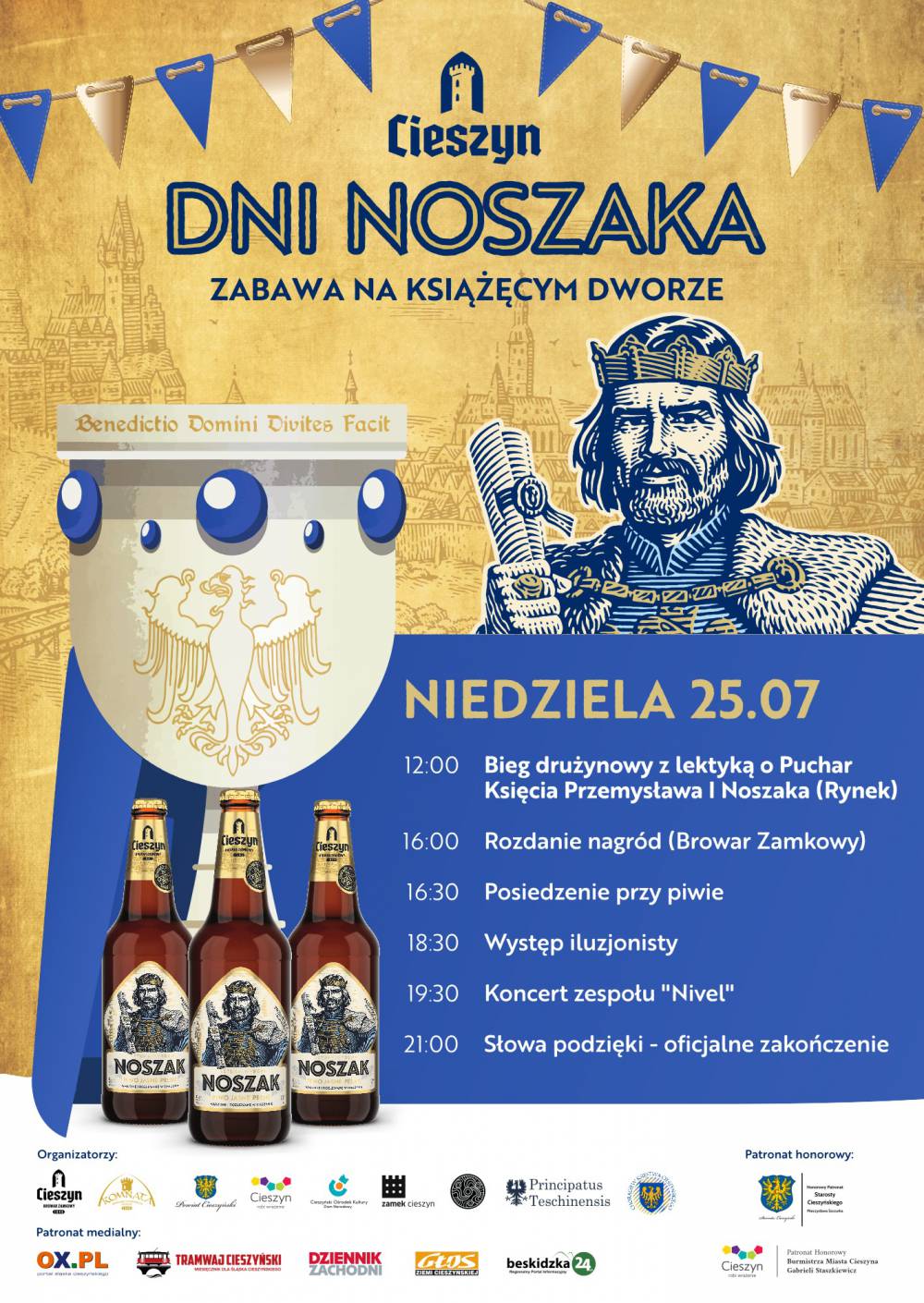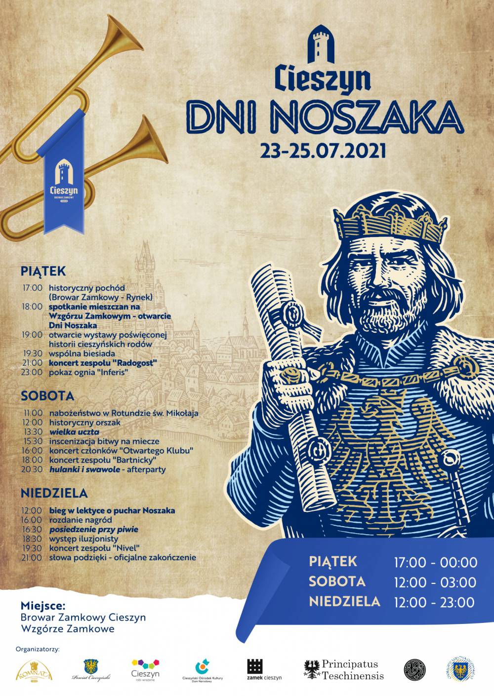 Książę powraca do miasta i wystawia uroczyste przyjęcie na cieszyńskim dworze! Zapraszamy do świętowania Dni Noszaka! Zupełnie nowe wydarzenie historyczno-biesiadne odbędzie się w dniach 23-25 lipca 2021 w Browarze Zamkowym Cieszyn i na cieszyńskim Wzgórzu Zamkowym.