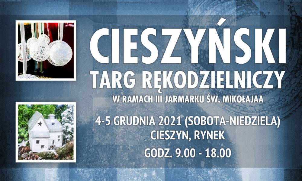 4 i 5 grudnia 2021 na Rynku w Cieszynie odbędzie się Cieszyński Targ Rękodzielniczy będący częścią III Jarmarku św. Mikołaja. Na cieszyńskim Rynku ponownie zaprezentują się twórcy i pracownie rękodzieła artystycznego z różnych części Polski!
