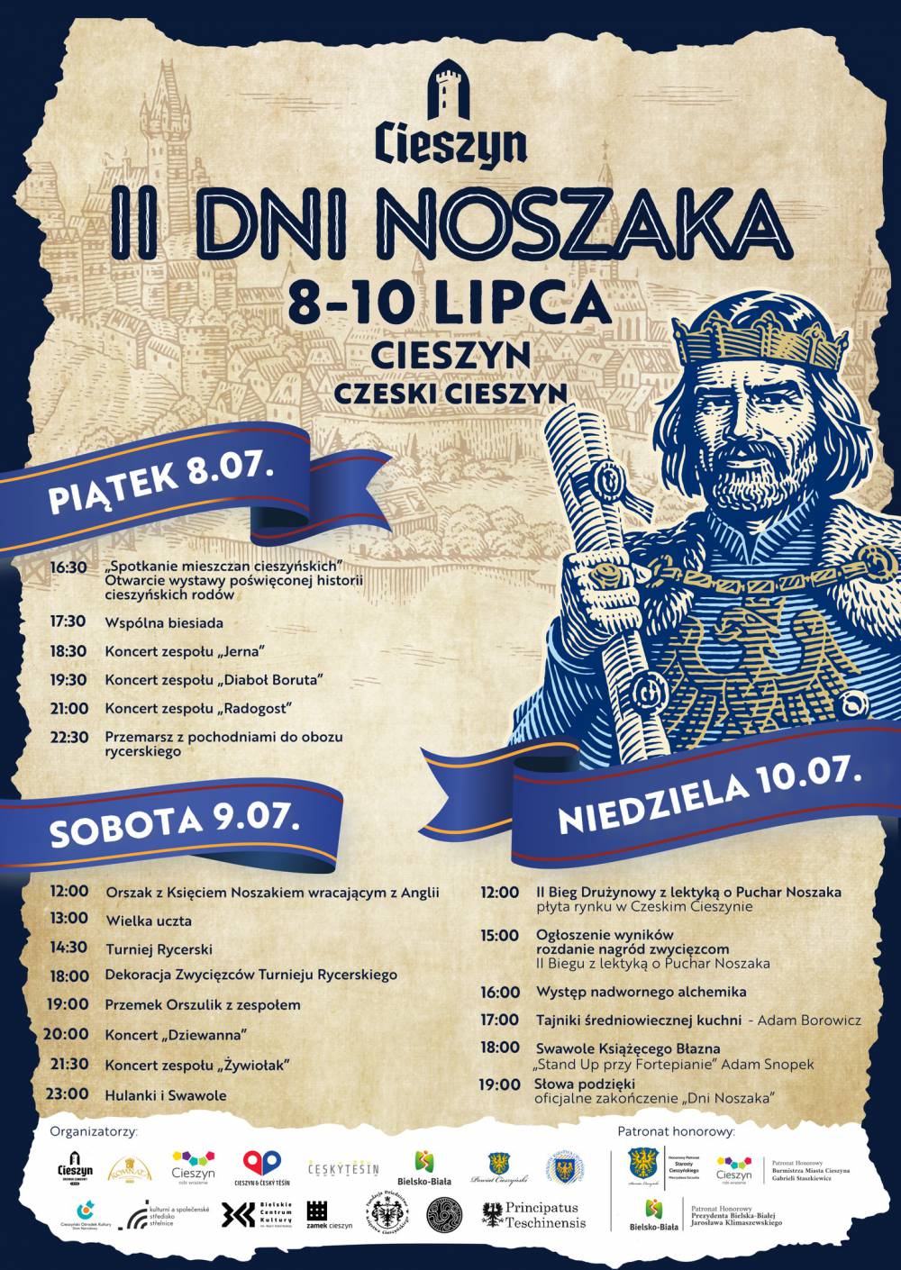 Książę Noszak powróci do Cieszyna na początku lipca! Tak jak w 2021 A.D. wejdzie do miasta i wystawi uroczyste przyjęcie! Już dziś zapraszamy do świętowania: 8, 9 i 10 lipca w Bielsku-Białej, Cieszynie i Czeskim Cieszynie!