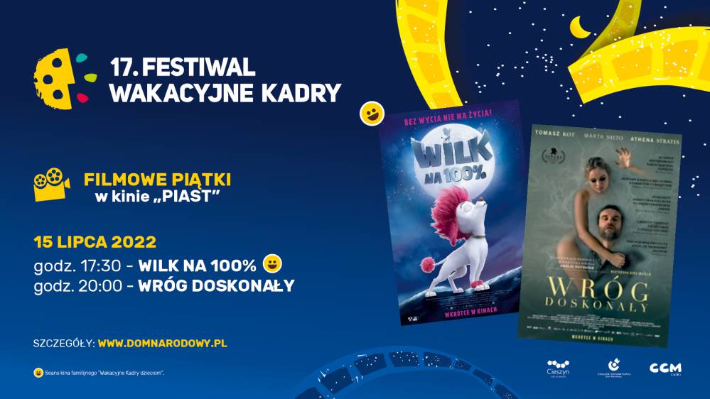 Zapraszamy do udziału w 17. edycji Wakacyjnych Kadrów! W tym roku czekają nas bezpłatne projekcje filmowe w kinie "Piast" we wszystkie wakacyjne piątki, koncert plenerowy i warsztaty filmowe.