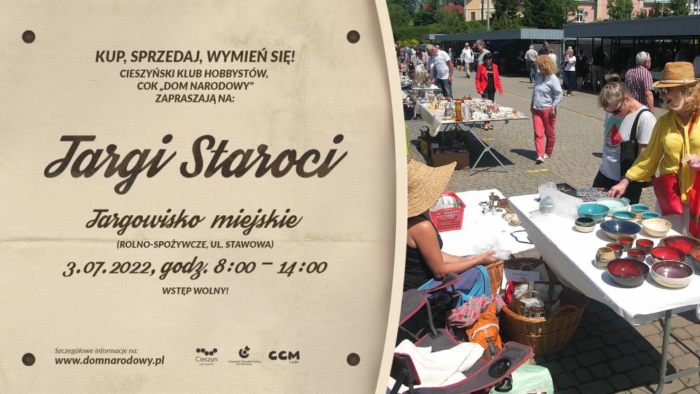 Cieszyński Ośrodek Kultury "Dom Narodowy" i Cieszyński Klub Hobbystów zapraszają na Targi Staroci, które odbędą się w pierwszą niedzielę lipca, 3 lipca 2022 r. w godzinach 8.00 - 14.00 NA TARGOWISKU MIEJSKIM (rolno-spożywczym, ul. Stawowa).