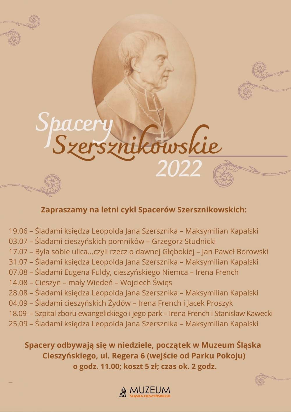 Ponieważ w miesiącach wakacyjnych nie ma Spotkań Szersznikowskich, proponujemy w zamian Spacery Szersznikowskie! Spacery odbywają się w niedziele, początek spaceru w Muzeum Śląska Cieszyńskiego (wejście od Parku Pokoju) o godz. 11.00.
