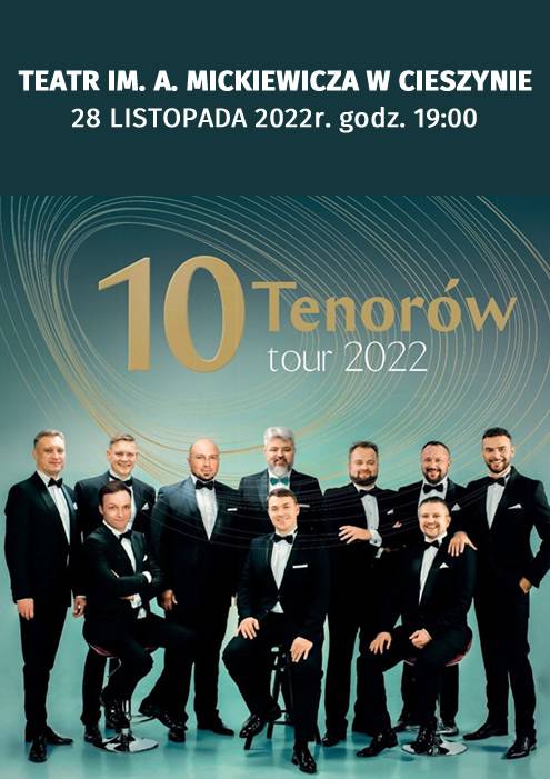 Zapraszamy 28 Listopada 2022 na godzinę: 19:00 do Teatru im. A. Mickiewicza w Cieszynie na koncert 10 Tenorów z orkiestrą.