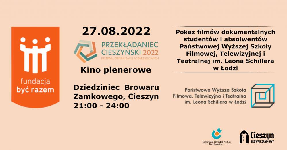 Fundacja Być Razem Cieszyński Ośrodek Kultury "Dom Narodowy" i Browar Zamkowy Cieszyn zapraszają na pokaz filmów dokumentalnych autorstwa studentów i absolwentów Państwowej Wyższej Szkoły Filmowej Telewizyjnej i Teatralnej im. Leona Schillera w Łodzi.