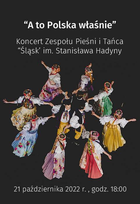 Zapraszamy na "A to Polska właśnie" - Koncert Zespołu Pieśni i Tańca "Śląsk' im. Stanisława Hadyny, odbędzie się 21 października 2022, godz. 18:00w Teatrze im. Adama Mickiewicza w Cieszynie.