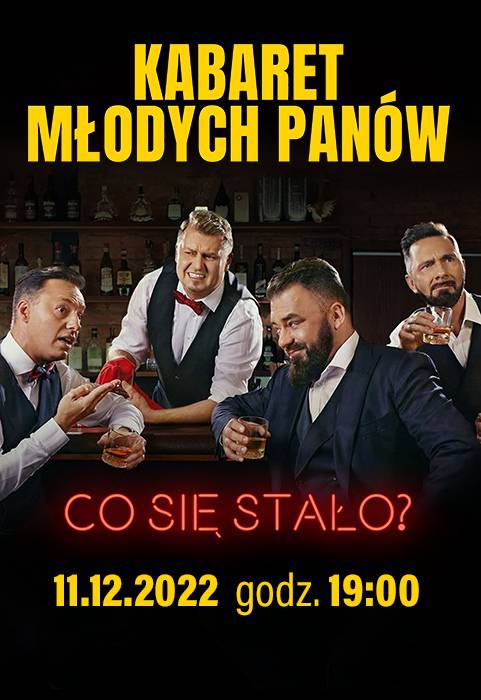 Zapraszamy 11 GRUDNIA 2022, na godzinie 16:00 oraz 19:00 do Teatru im. Adama Mickiewicza w Cieszynie, na najnowszy program Kabaretu Młodych Panów „CO SIĘ STAŁO?”