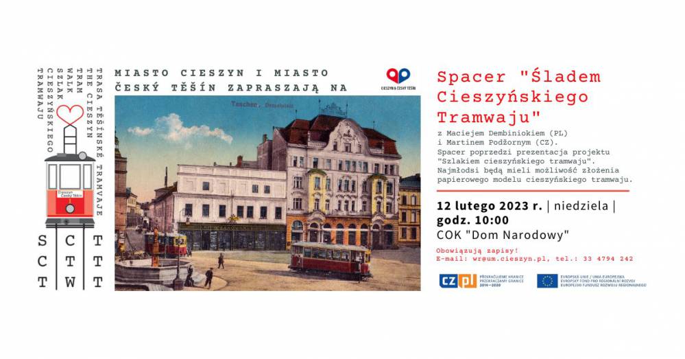 Miasto Cieszyn i Město Český Těšín zapraszają 12 lutego 2023 roku na spacer Śladem cieszyńskiego tramwaju z Maciejem Dembiniokiem i Martinem Podžorným.