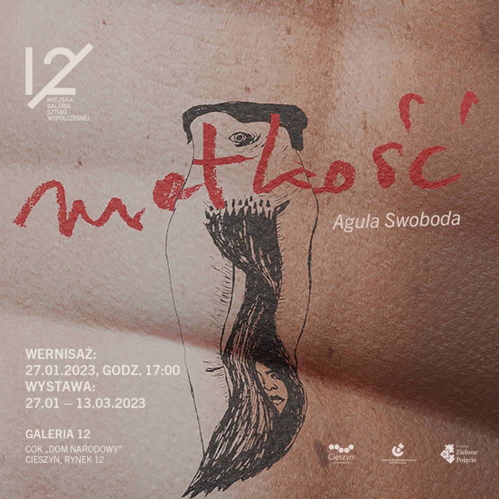 Cieszyński Ośrodek Kultury "Dom Narodowy" i Fundacja Zielone Pojęcie zapraszają na wystawę Aguli Swobody pt. "Matkość". Ekspozycja będzie dostępna dla zwiedzających od 27 stycznia do 13 marca 2023r.w Miejskiej Galerii Sztuki Współczesnej 12 (na parterze Domu Narodowego w Cieszynie).