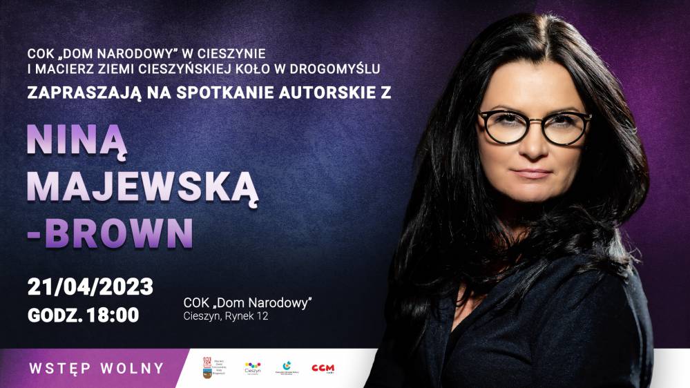 Cieszyński Ośrodek Kultury "Dom Narodowy" i Macierz Ziemi Cieszyńskiej Koło Drogomyśl zapraszają na spotkanie autorskie z Niną Majewską-Brown. Wydarzenie odbędzie się w piątek 21 kwietnia o godzinie 18:00 w Domu Narodowym w Cieszynie.