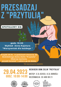 O godzinie 10:00 zapraszamy na wykład Anny Kajstury - "Warzywniak dla każdego", podczas którego będzie można się dowiedzieć o zakładaniu przydomowych ogródków, o ekologicznych sposobach uprawy, o tym, jak bez większych kosztów założyć ogórek warzywny, dlaczego warto zająć się własną uprawą, i wiele, wiele więcej. Anna Kajstura górczanka z wyboru, pasjonatka, która uwielbia prace w ogrodzie. Nie można przegapić tego spotkania!