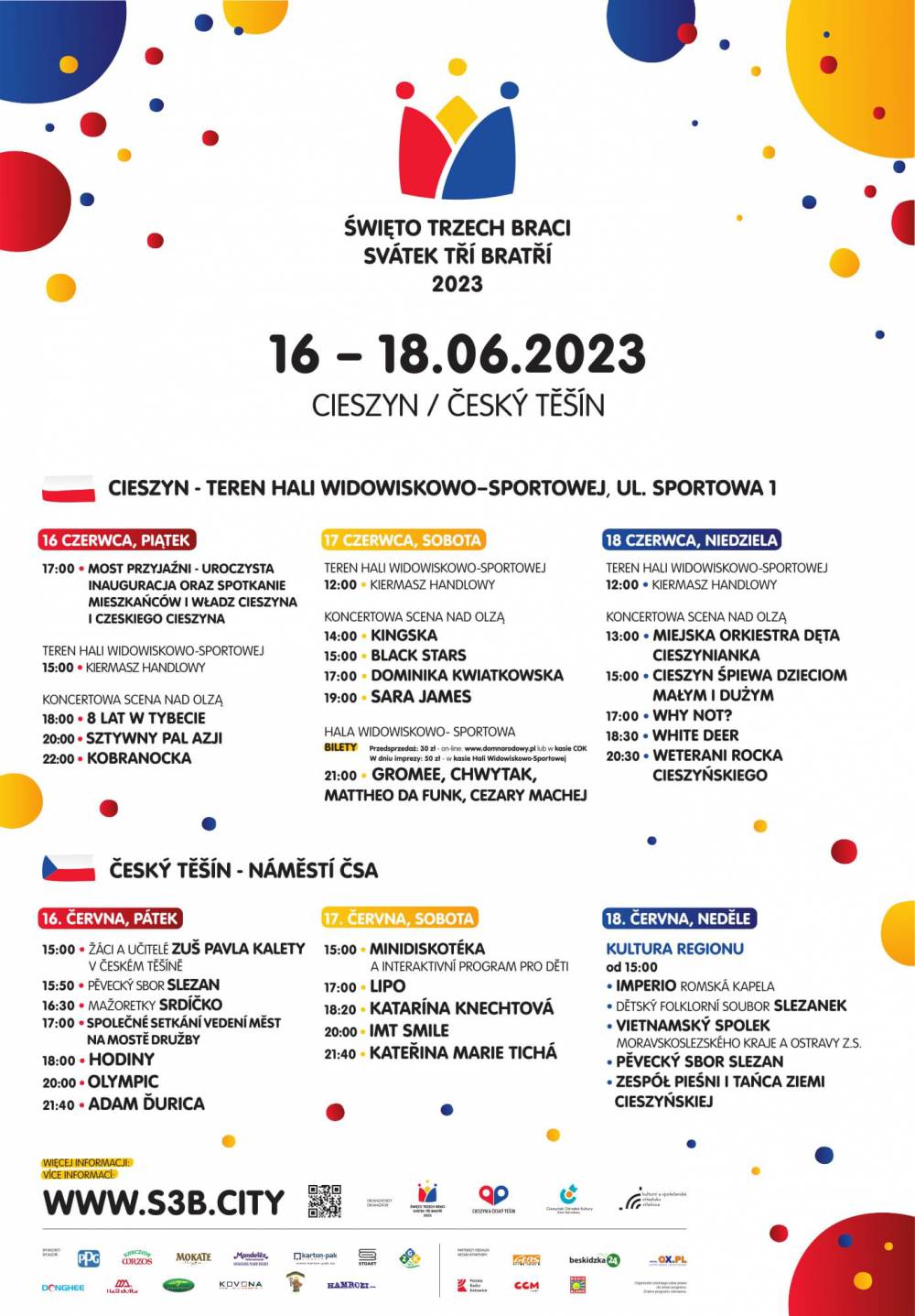 Program Czeskiego Cieszyna i pozostałe szegóły na ponizszym plakacie oraz na profilu FB Święto Trzech Braci Cieszyn - Svátek Tří Bratří Český Těšín: https://www.facebook.com/swieto3braci