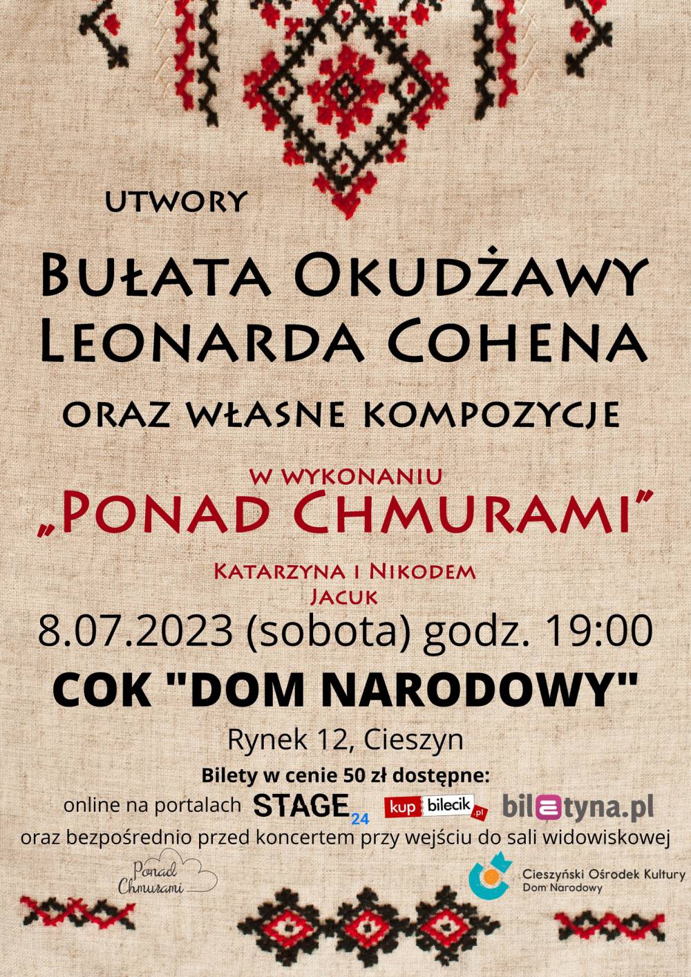 Zapraszamy na koncert zespołu Ponad Chmurami, który odbędzie się 08 lipca 2023 r. w Cieszyńskim Ośrodku Kultury "DOM NARODOWY".