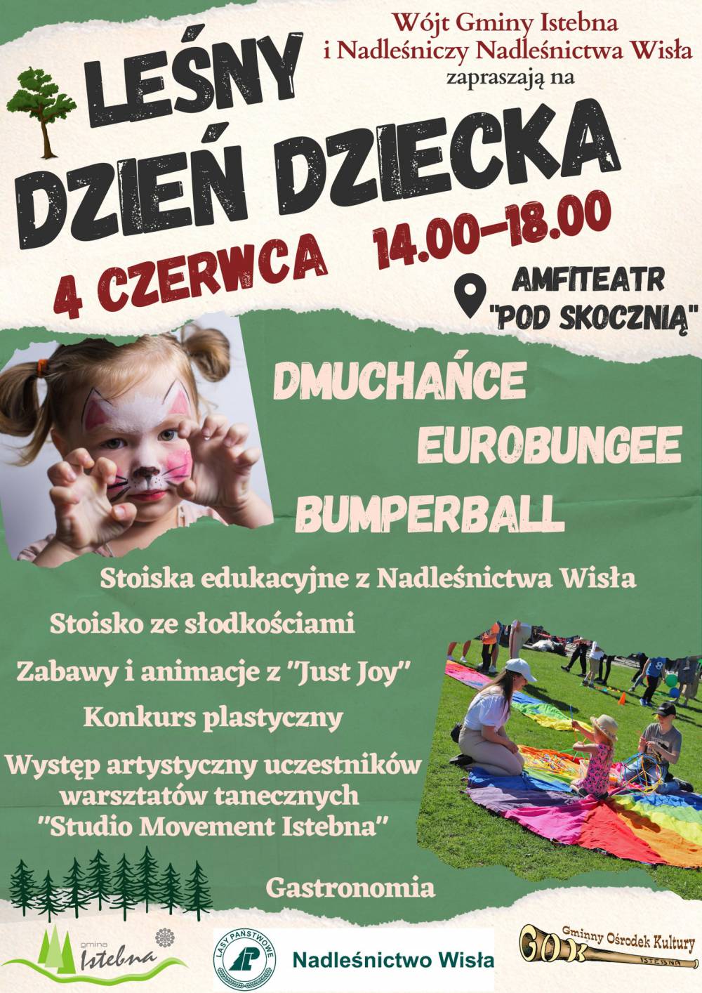 Już w najbliższą niedzielę obchodzić będziemy LEŚNY DZIEŃ DZIECKA!Serdecznie zapraszamy do Amfiteatru "Pod Skocznią" w Istebnej, gdzie w godzinach 14-18 będzie mnóstwo atrakcji!Na wszystkie dzieci czekać będą: