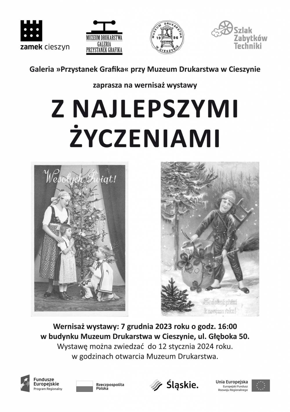 Muzeum Drukarstwa w Cieszynie zaprasza na wystawę "Z najlepszymi życzeniami". Wernisaż wystawy odbędzie się 07 grudnia 2023 r. o godzinie 16:00, a wystawa potrwa do 12 stycznia 2024 r.