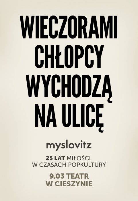 Zapraszamy w Sobotę, 09 marca 2024, na godzinę 18:00 do Teatru im. A. Mickiewicza w Cieszynie na koncert MYSLOVITZ - 25 Lat MIŁOŚCI W CZASACH POPKULTURY.