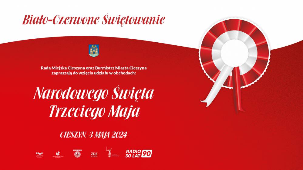 Rada Miejska Cieszyna oraz Burmistrz Miasta Cieszyna zapraszają do wzięcia udziału w obchodach Narodowego Święta Trzeciego Maja.