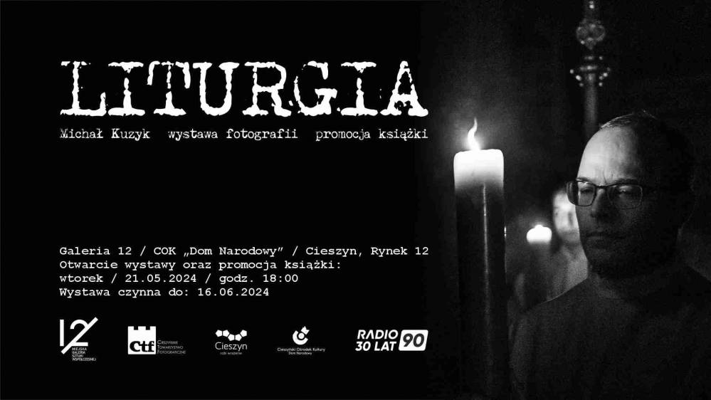 Cieszyński Ośrodek Kultury "Dom Narodowy" wspólnie z Cieszyńskim Towarzystwem Fotograficznym zapraszają na wernisaż wystawy fotografii Michała Kuzyka pt. "Liturgia" połączony z promocją albumu fotograficznego pod tym samym tytułem, który po raz pierwszy zostanie zaprezentowany podczas wernisażu. Wydarzenie odbędzie się we wtorek 21 maja o godzinie 18:00 w Miejskiej Galerii Sztuki Współczesnej 12 na parterze Domu Narodowego w Cieszynie, potrwa do 16 czerwca 2024.