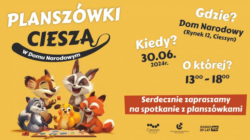 Klub miłośników gier planszowych "Planszówki Cieszą" serdecznie zaprasza 30 czerwca o godz. 13:00 na spotkanie w Domu Narodowym.