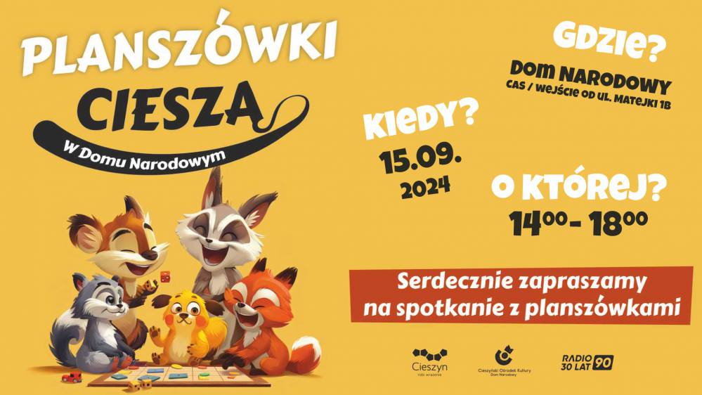 Klub Miłośników Gier Planszowych "Planszówki Cieszą" serdecznie zaprasza na spotkanie w Domu Narodowym. Klub jest niewielki i dysponuje jeszcze skromnymi zasobami gier z prywatnych kolekcji, ale na pewno dla każdego znajdzie się coś interesującego! Klub spotyka się podczas cotygodniowych spotkań środowych oraz raz w miesiącu w niedzielę. Zapraszamy w niedzielę 15 września w godzinach 14:00-18:00!