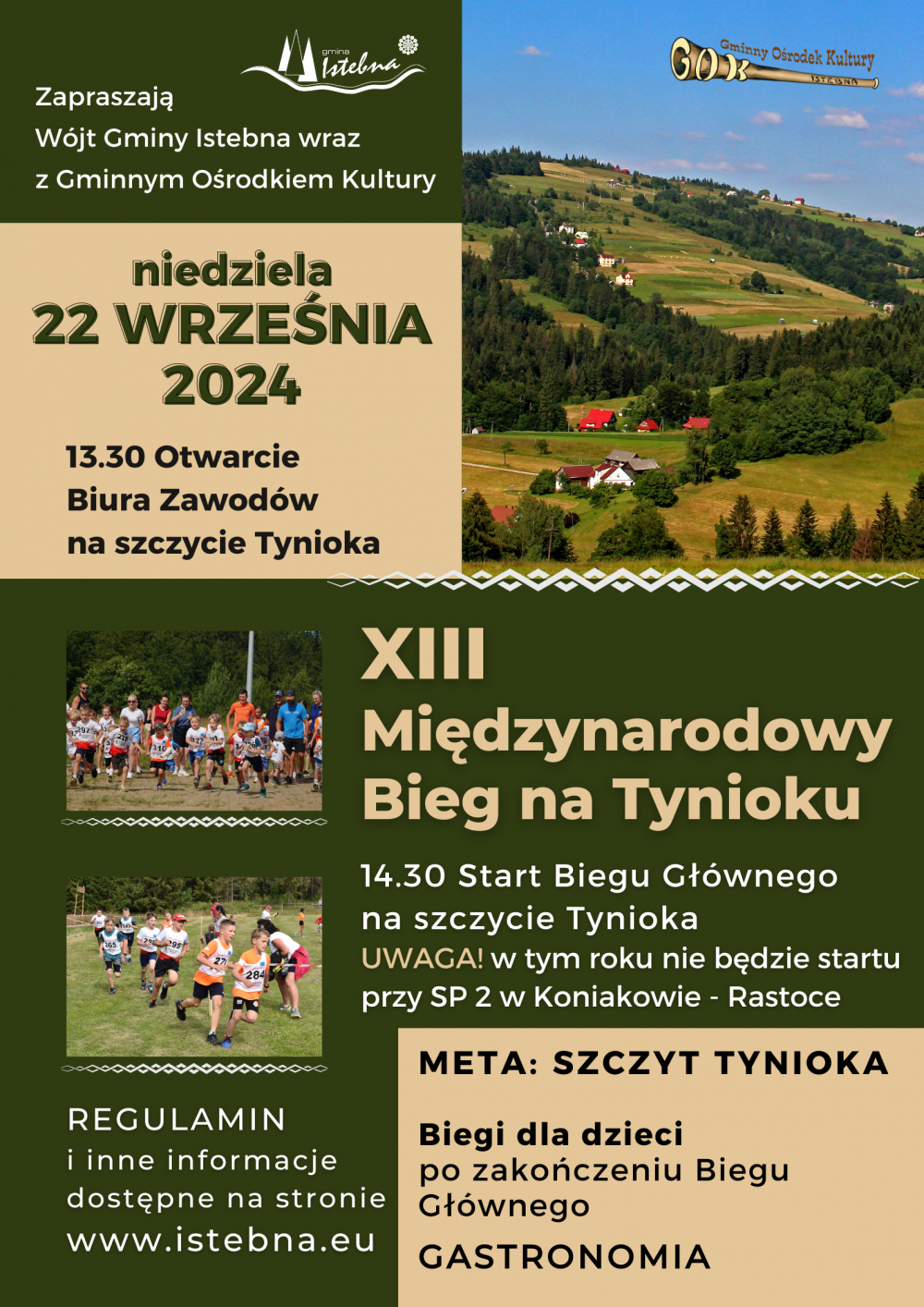 Wójt Gminy Istebna zaprasza na XIII Międzynarodowy Bieg na Tyniok, jaki odbędzie się w niedzielę 22 września 2024.