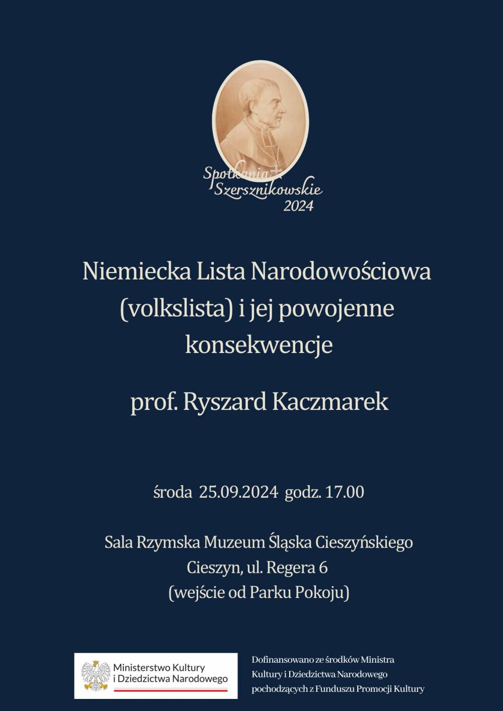 Zapraszamy do 25 września 2024r. do Muzeum Śląska Cieszyńskiego na Spotkanie Szersznikowskie: NIEMIECKA LISTA NARODOWOŚCIOWA (VOLKSLISTA) I JEJ POWOJENNE KONSEKWENCJE - prof. Ryszard Kaczmarek.