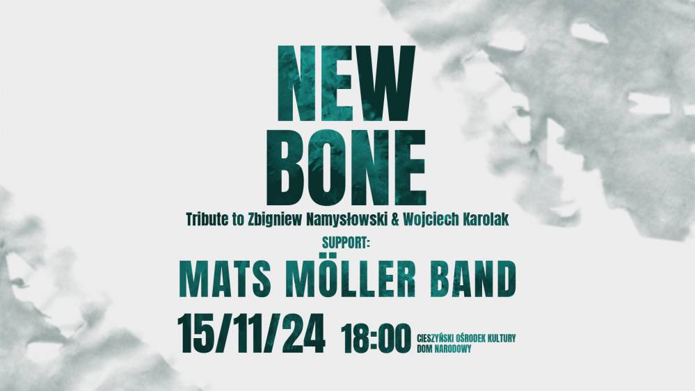 Cieszyński Ośrodek Kultury "Dom Narodowy" i Kulturní a společenské středisko "Střelnice" - Kass zapraszają na koncert zespołu New Bone w ramach Cieszyńskiego Festiwalu Jazzowego. W nowym projekcie zespół New Bone przybliża dokonania legendarnych "gigantów" polskiej sceny jazzowej - Zbigniewa Namysłowskiego i Wojciecha Karolaka. Jako support wystąpi zespół Mats Möller Band.