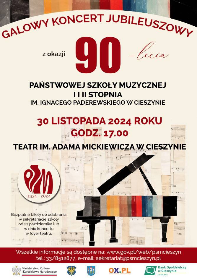 Więcej informacji na plakacie poniżej oraz na stronach: https://www.gov.pl/web/psmcieszyn/jubileusz-90-lecia-szkoly oraz https://www.facebook.com/psmcieszyn