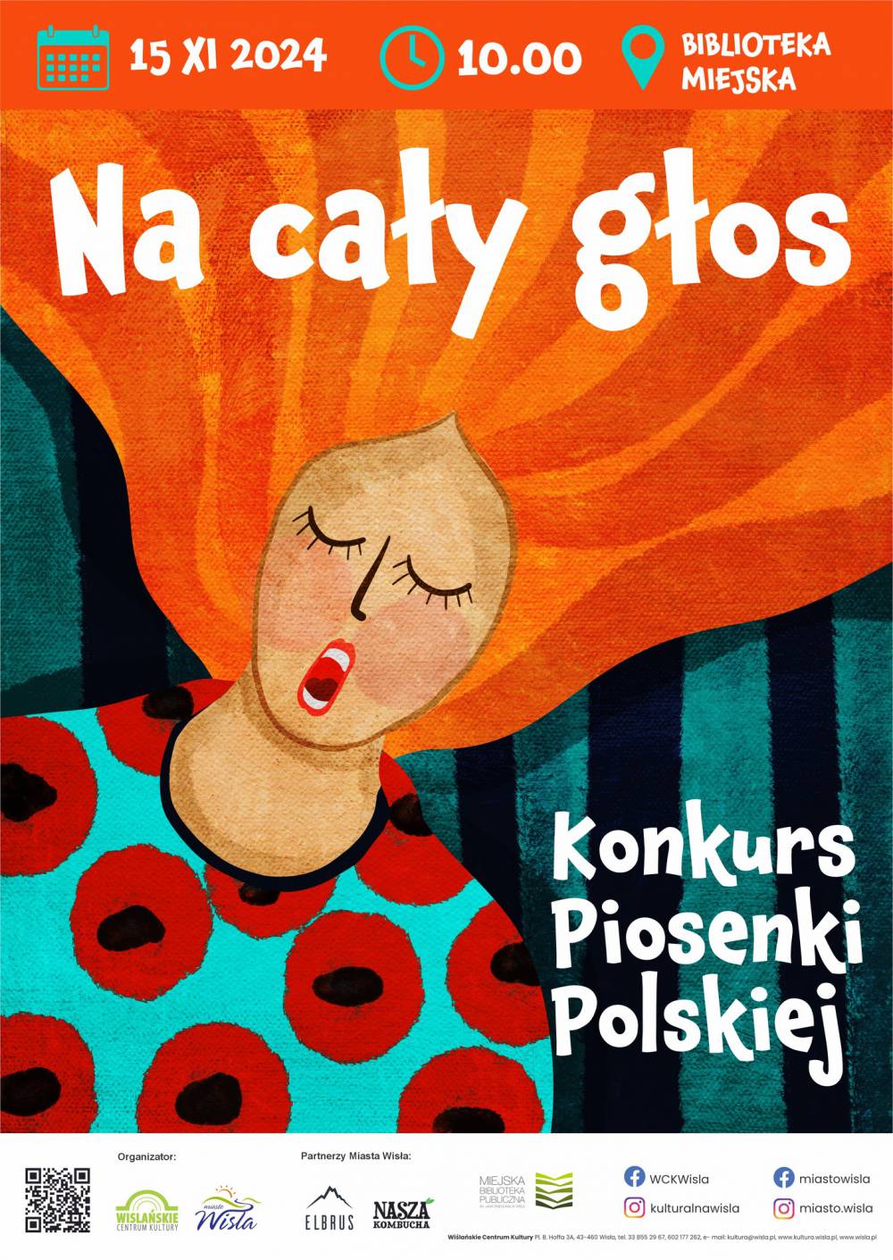 Zapraszamy serdecznie dzieci i młodzież do udziału w Konkursie Piosenki Polskiej "Na cały głos", który odbędzie się w Wiśle 15 listopada 2024 roku.