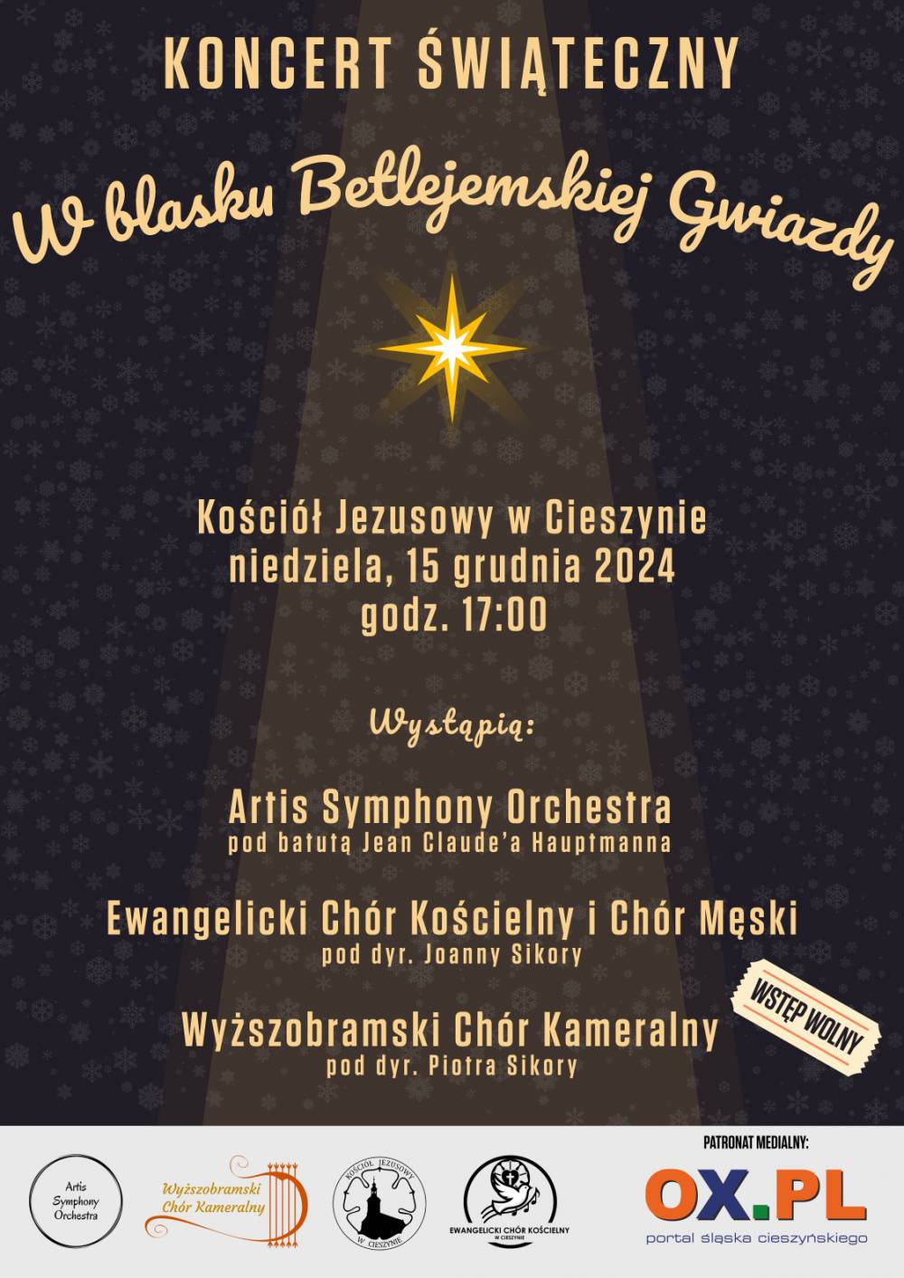 Parafia Ewangelicko-Augsburska w Cieszynie zaprasza na wyjątkowy koncert świąteczny "W blasku Betlejemskiej Gwiazdy", który odbędzie się 15 grudnia 2024r w Kościele Jezusowym w Cieszynie.