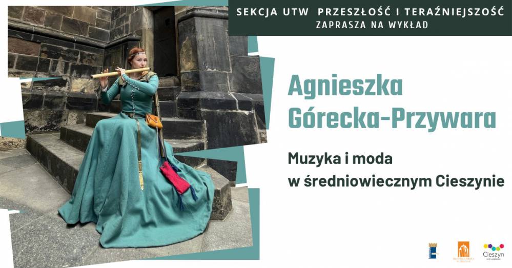Spotkanie przeniesie Państwa w czasy średniowiecznego, piastowskiego Cieszyna. Poznamy jego odcienie i blaski poprzez kulturę i modę dworską tamtych czasów, a wszystko to przy akompaniamencie muzyki prezentowanej na zrekonstruowanych kopiach historycznych instrumentów–fletów. Podczas wykładu będzie można usłyszeć najważniejszych twórców muzycznych epoki średniowiecza oraz zobaczyć prezentowane stroje, dodatki i bibeloty tworzące strój dworski. Wprost z Cieszyna wyruszymy na tereny Niemiec i do Pragi przez Włochy i Francję wprost na dwór królów Anglii. Będzie to iście kosmopolityczna uczta dla zmysłów i zachęta do dalszych podróży historycznych w czasie.