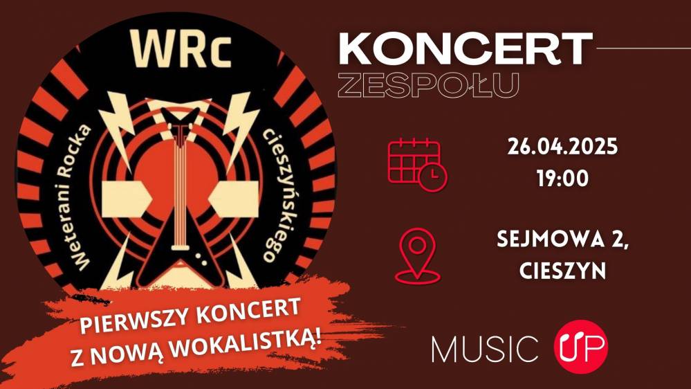 Zapraszamy na wyjątkowy wieczór z legendą lokalnej sceny rockowej – zespołem Weterani Rocka Cieszyńskiego WRc! Koncert odbędzie się 26 kwietnia o godz. 19:00 w Music Up! ul. Sejmowa 2, Cieszyn.