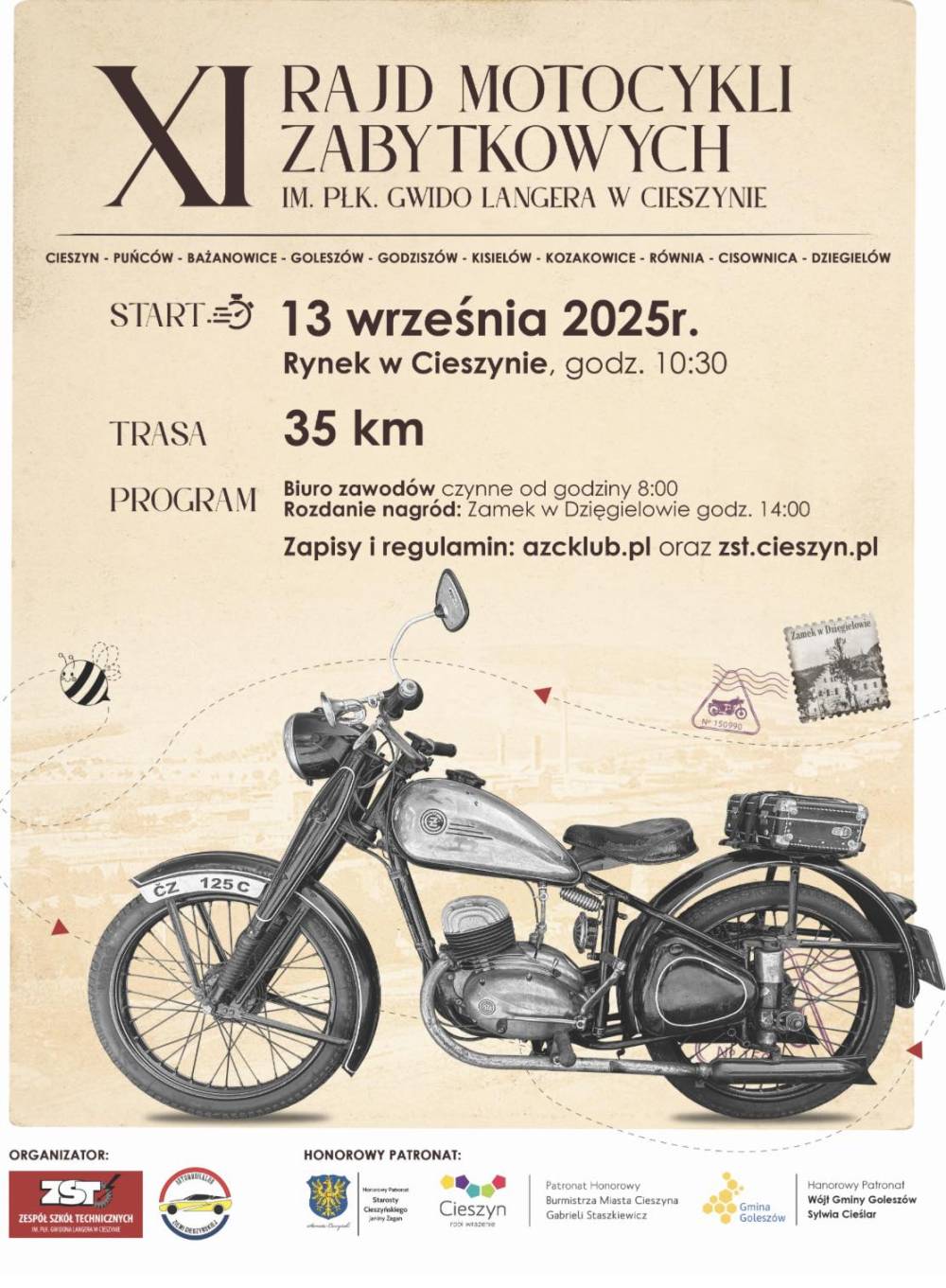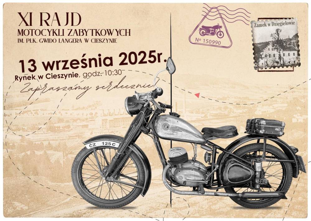 Już 13 września 2025r zapraszamy na Rynek w Cieszynie na XI Rajd Motocykli Zabytkowych im. Płk. Gwido Langera.