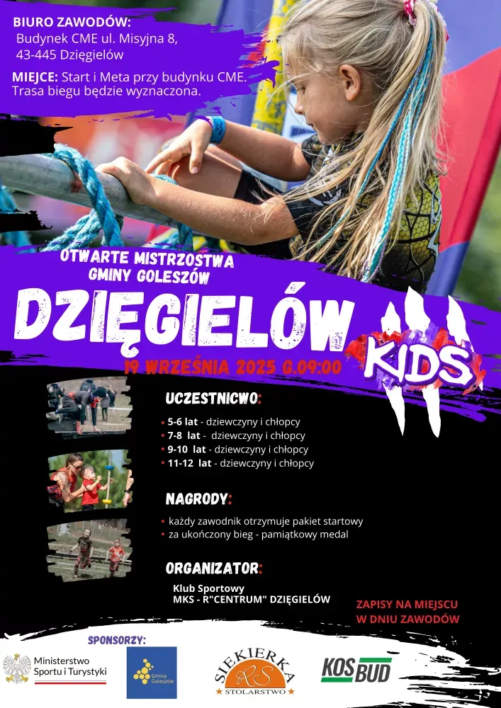 W piątek, 19 września, w Dzięgielowie odbędzie się kolejna edycja Barbarian Kids – biegu z przeszkodami dla najmłodszych, organizowanego przez Misyjny Klub Sportowo-Rekreacyjny „Centrum” z Dzięgielowa przy wsparciu finansowym gminy Goleszów. Do udziału w zawodach mogą zgłaszać się dziewczęta i chłopcy w następujących kategoriach wiekowych: 5–6 lat, 7–8 lat, 9–10 lat oraz 11–12 lat. Start i meta zawodów znajdować się będą przy budynku Centrum Misji i Ewangelizacji w Dzięgielowie. Zapisy odbywać się będą na miejscu w dniu zawodów.