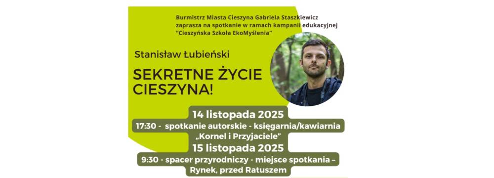 Burmistrz Miasta Cieszyna Gabriela Staszkiewicz zaprasza na kolejne spotkanie w ramach kampanii edukacyjnej "Cieszyńska Szkoła EkoMyślenia": Sekretne życie Cieszyna!