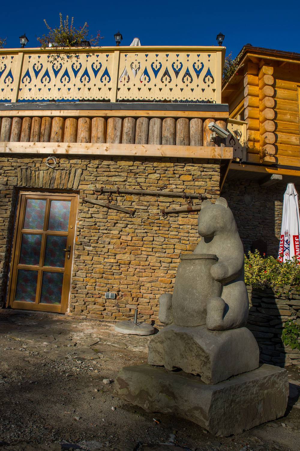 Niedźwiadek został ulokowany tuż przy wejściu do karczmy regionalnej Chata Olimpijczyka Jasia i Helenki. W karczmie możemy delektować się tradycyjnymi wiślańskimi potrawami, obecnymi od wieków na stołach miejscowych górali.