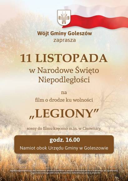 11 listopada w Narodowe Święto Niepodległości o godz. 16.00 zapraszamy na projekcję filmu "Legiony".