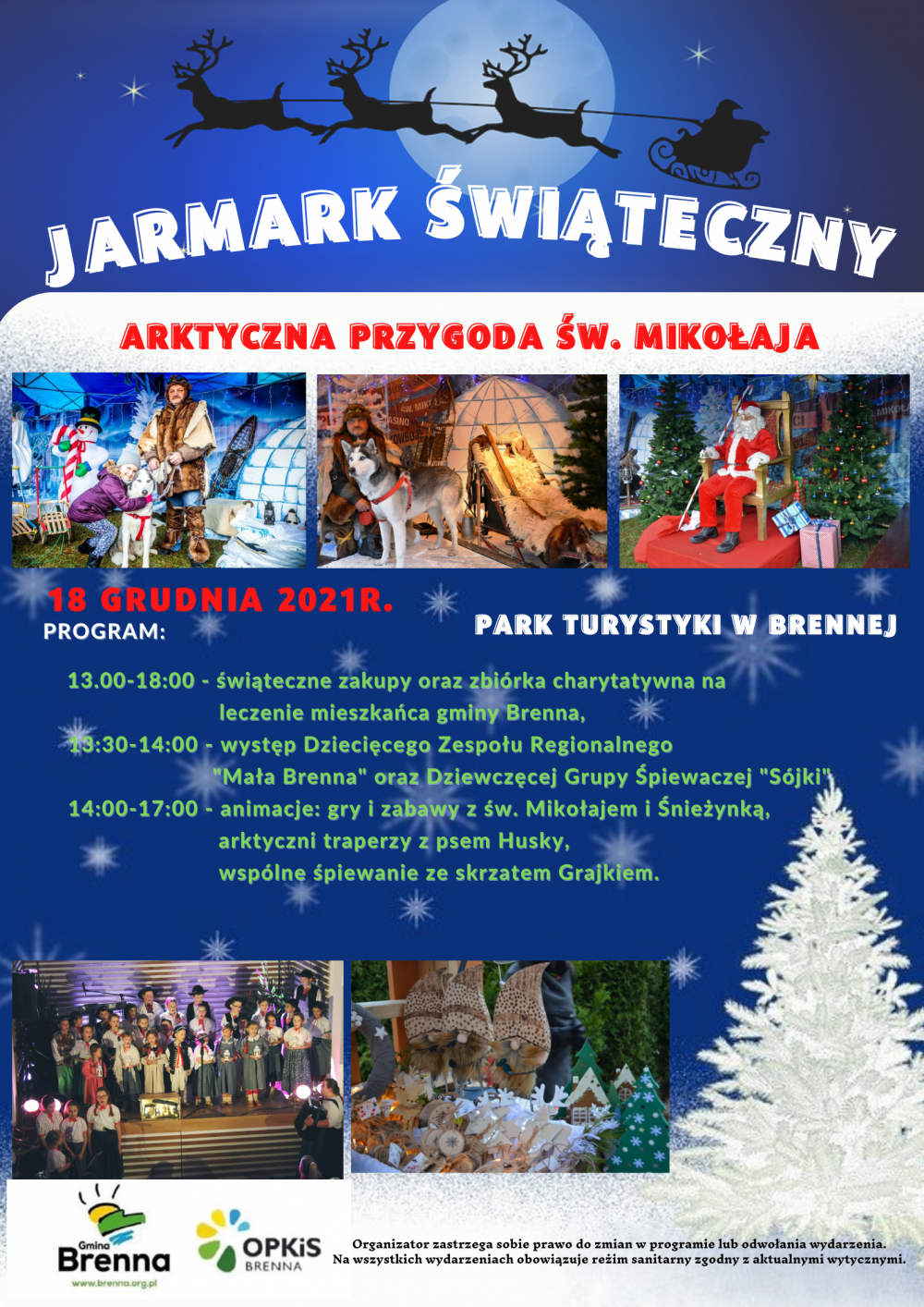 18 grudnia Mikołaj wraz z arktycznymi traperami, psem Husky oraz ze Śnieżynką zaprosi wszystkich do wspólnej zabawy i konkursów. O oprawę muzyczną zadba Dziecięcy Zespół Regionalny "Mała Brenna", Dziewczęca Grupa Śpiewacza "Sójki" oraz skrzat Grajek.