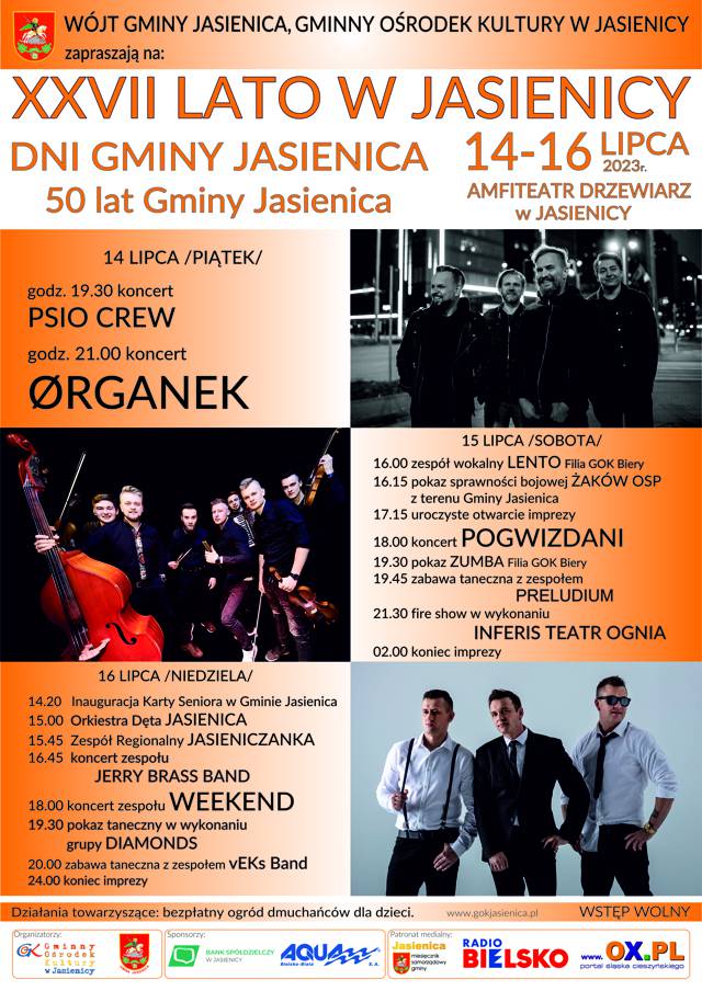 Wójt Gminy Jasienica Janusz Pierzyna i Gminny Ośrodek Kultury w Jasienicy zapraszają na XXVII Lato w Jasienicy Dni Gminy Jasienica.