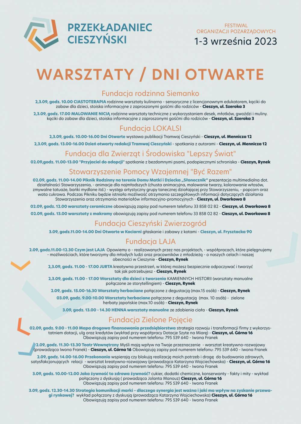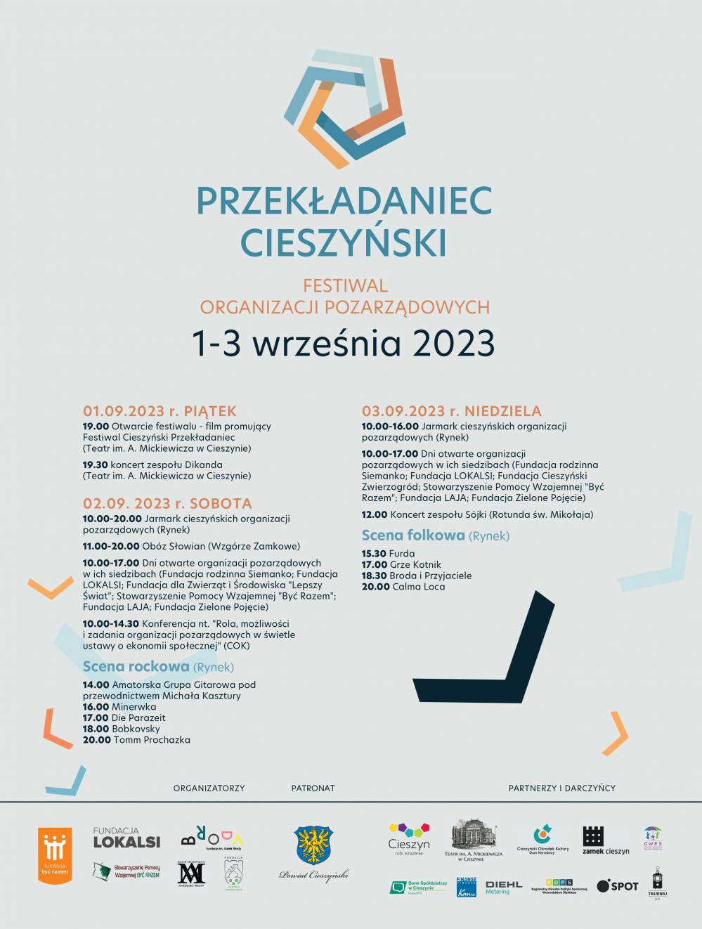 Zapraszamy na tegoroczny festiwal organizacji pozarządowych „CIESZYŃSKI PRZEKŁADANIEC”, który odbędzie się w dniach 01 - 03 września 2023 w Cieszynie.