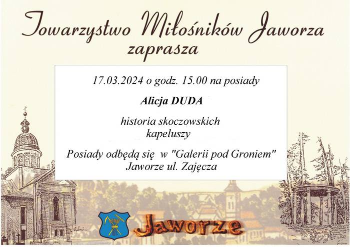 Towarzystwo Miłośników Jaworza zaprasza na prelekcję Alicji Dudy pt. Historia skoczowskich kapeluszy.