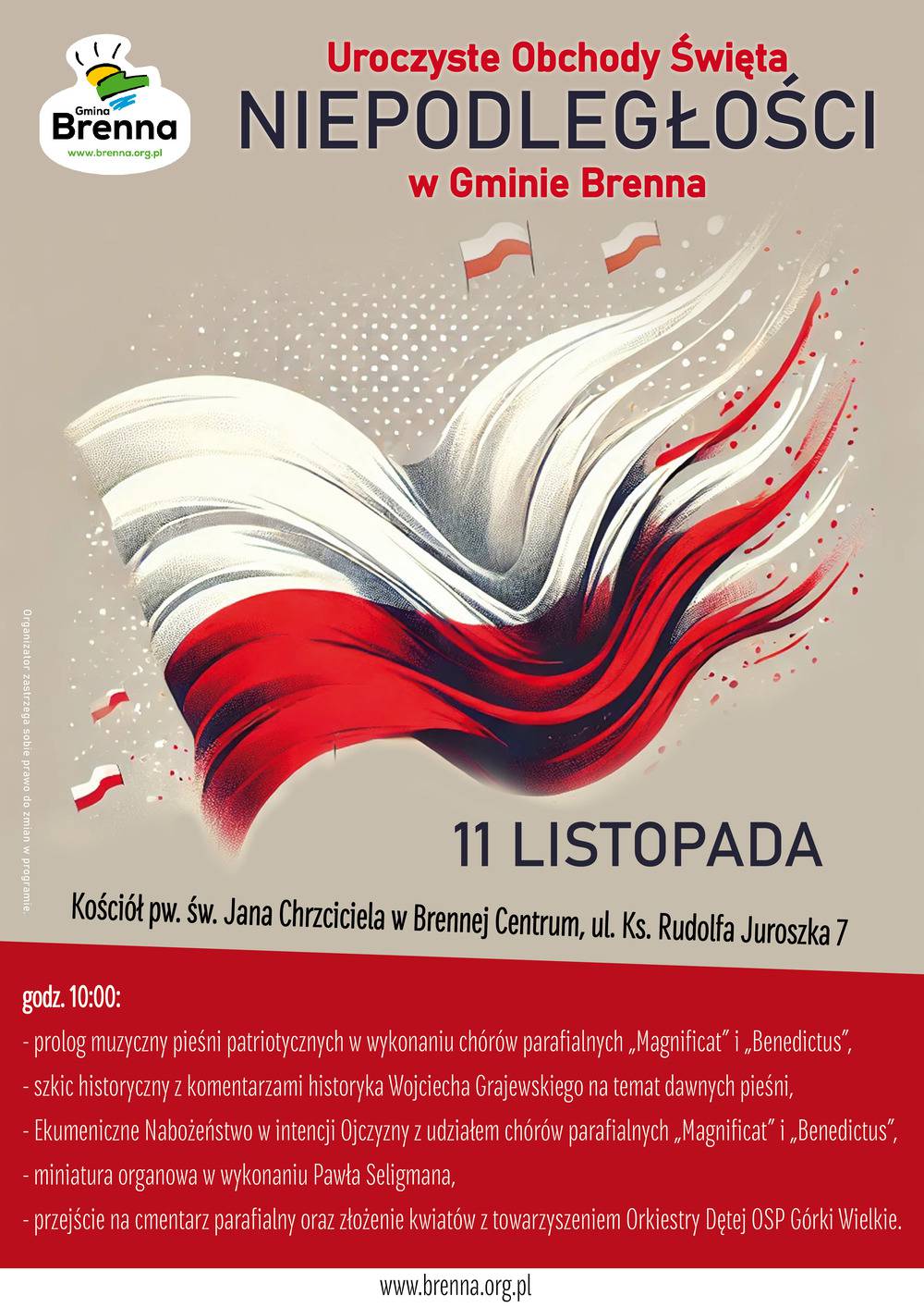 Uroczyste Obchody Święta Niepodległości w Gminie Brenna - 11 listopada