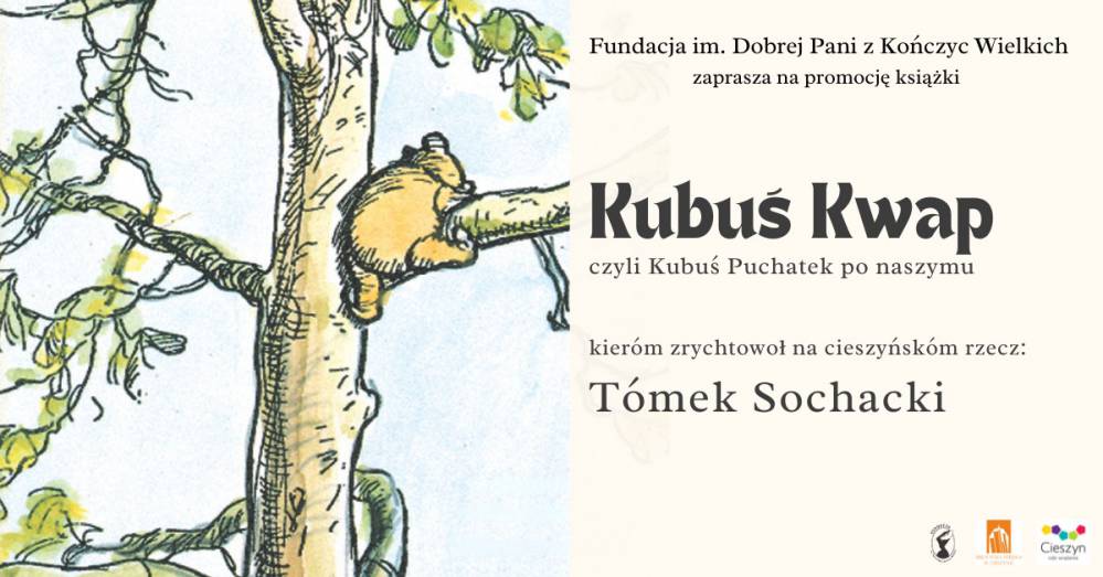 Biblioteka Miejska w Cieszynie i Fundacja im. Dobrej Pani z Kończyc Wielkich zaprasza 3 grudnia 2024 r. o godz. 17.00 na promocję książki „Kubuś Kwap”, którą na gwarę cieszyńską przetłumaczył