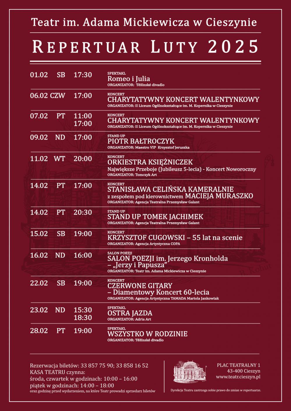 Poniżej propozycje na luty, a cały repertuar na stronie: https://www.teatr.cieszyn.pl/