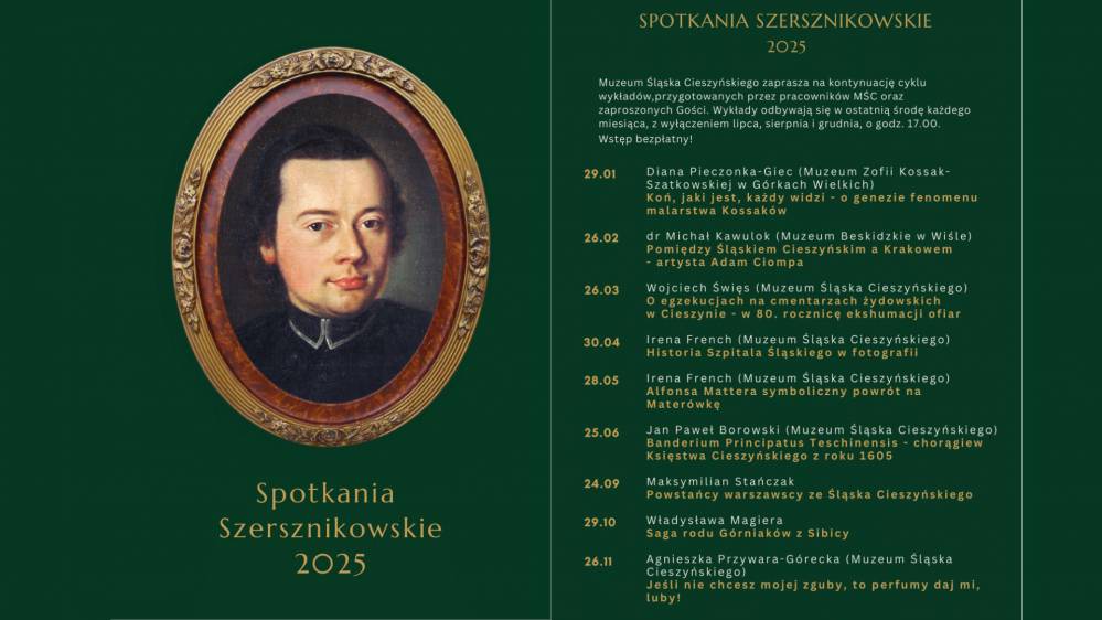 Muzeum Śląska Cieszyńskiego zaprasza po raz kolejny na wyjątkowy cykl wykładów w ramach Spotkań Szersznikowskich. To kontynuacja tradycji, która pozwala zgłębić fascynujące aspekty historii Śląska Cieszyńskiego i nie tylko. W programie znajdziemy wykłady przygotowane zarówno przez pracowników Muzeum, jak i zaproszonych ekspertów, którzy podzielą się swoimi odkryciami i pasją.