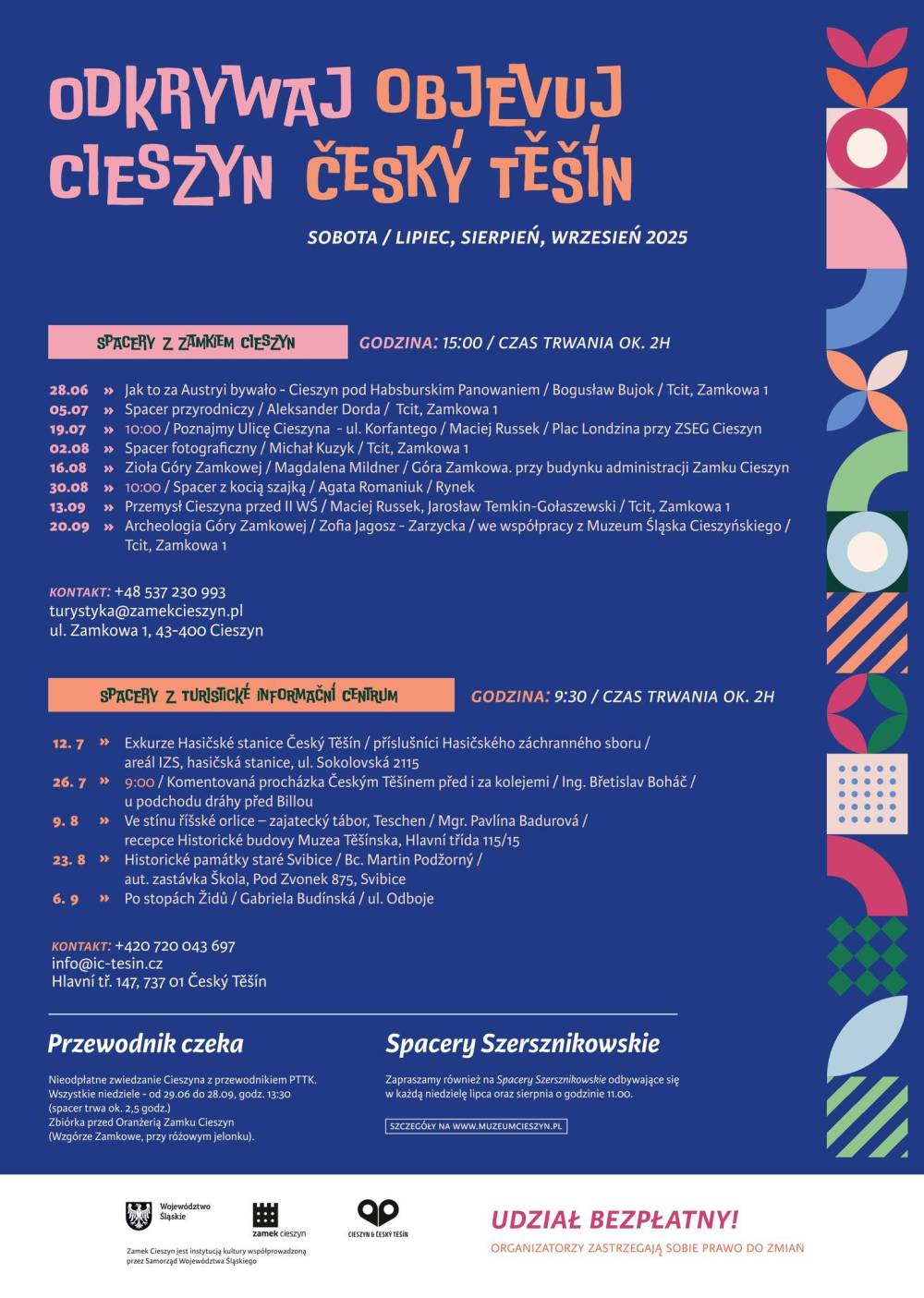 Zamek Cieszyn zaprasza na tradycyjną akcją spacerową "Odkrywaj Cieszyn/ Objevuj Český Těšín". Co sobotę, przez najbliże 3 miesiące czekamy na was po obu stronach Olzy z ciekawymi tematami i propozycjami spacerów.