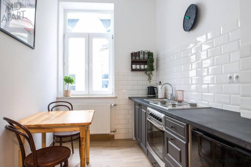 W mieszkaniu do dyspozycji gości znajduje się funkcjonalna kuchnia, łazienka (prysznic, toaleta oraz umywalka), kawa, herbata, bezpłatny dostęp do wi-fi oraz telewizja. Znajdujący się na drugim piętrze zlokalizowanej między Rynkiem a Wzgórzem Zamkowym Mid Apart został zaprojektowany z myślą o parach oraz podróżujących rodzinach. Jesteśmy przekonani, że dobrze będą się tu czuli również indywidualni podróżnicy, nastawieni na komfortowy odpoczynek. Z naszego balkonu rozpościera się całkiem ładny widok na Wieżę Piastowską, a do sąsiadów zza Olzy jest wyjątkowo blisko – ledwie trzy minuty spacerkiem. Kameralny lecz funkcjonalny i elegancki – tymi słowami można w skrócie opisać Mid Aparta.