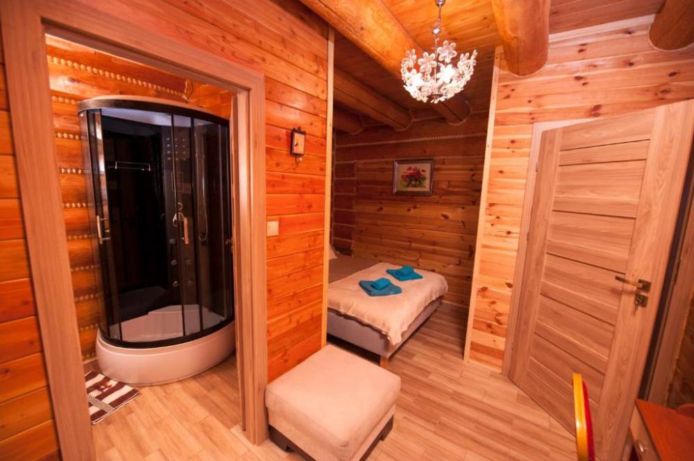 Wyposażenie obejmuje również lodówkę i czajnik.