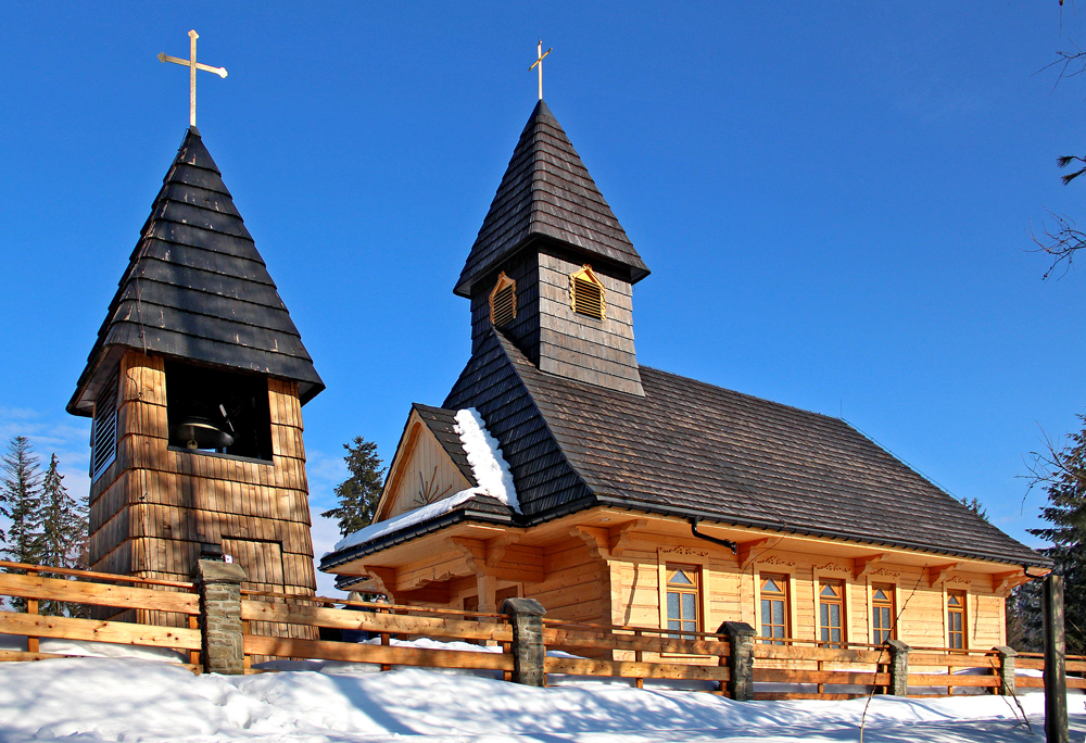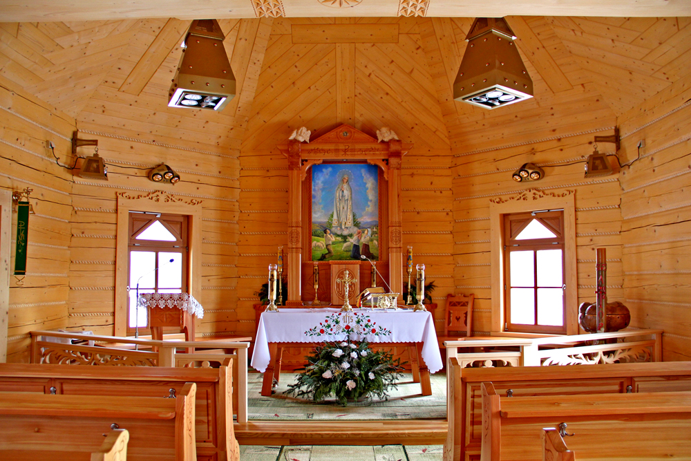 Drewniany kościół na Stecówce i jego wnętrze, foto Gminny Ośrodek Kultury, Promocji, Informacji Turystycznej I Biblioteka Publiczna w Istebnej